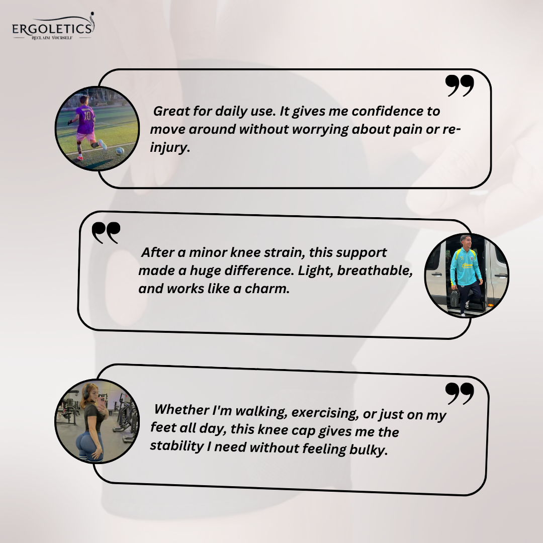 The Ergoflex™ Knee Cap is designed to provide targeted compression, joint stability, and all-day comfort for individuals dealing with knee pain, injuries, or post-surgical recovery. Crafted from premium breathable materials, it offers a snug yet flexible fit, ensuring maximum support without restricting movement.